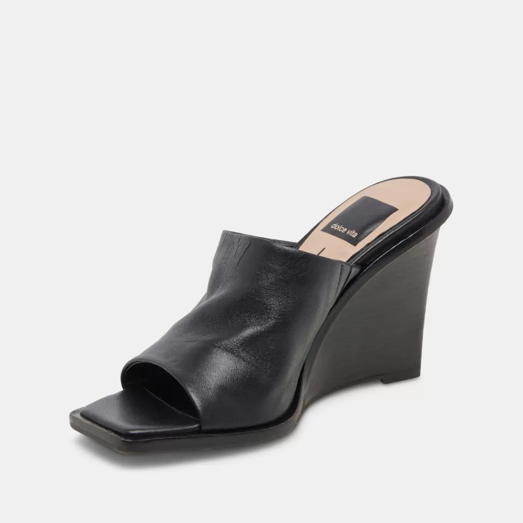DOLCE VITA Gilded Wedges Black Leather Shop