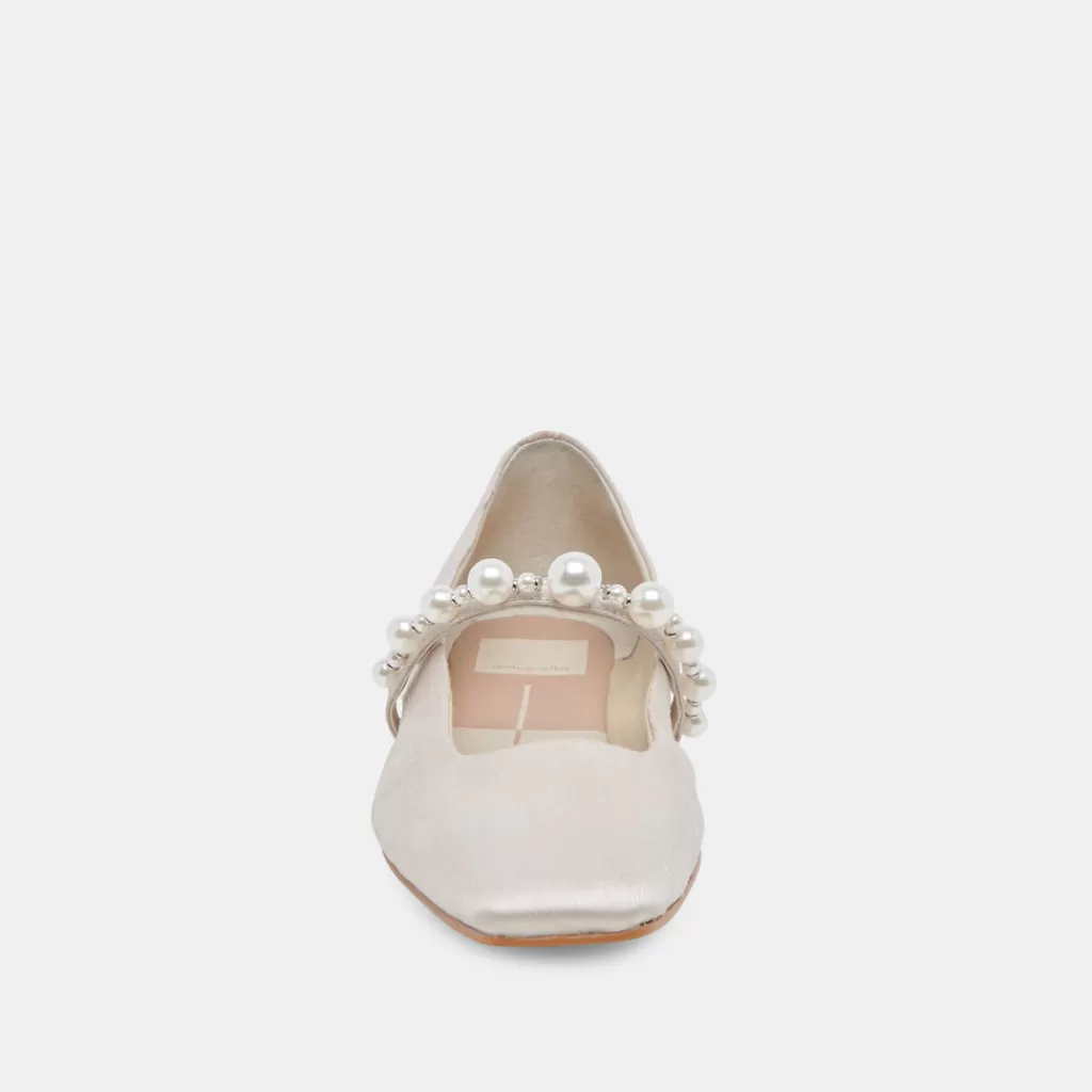 DOLCE VITA Roxana Pearl Ballet Flats Ivory Satin New