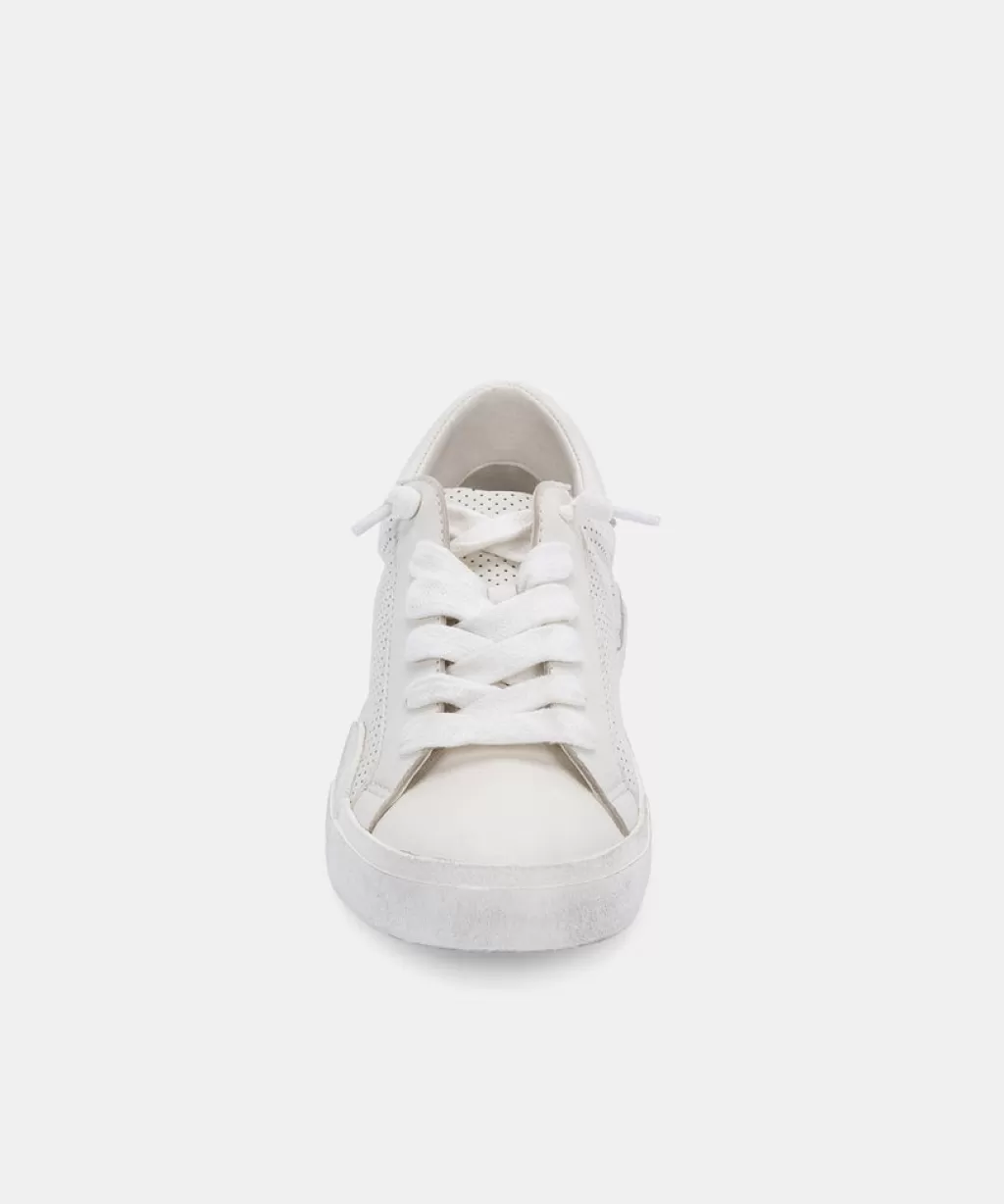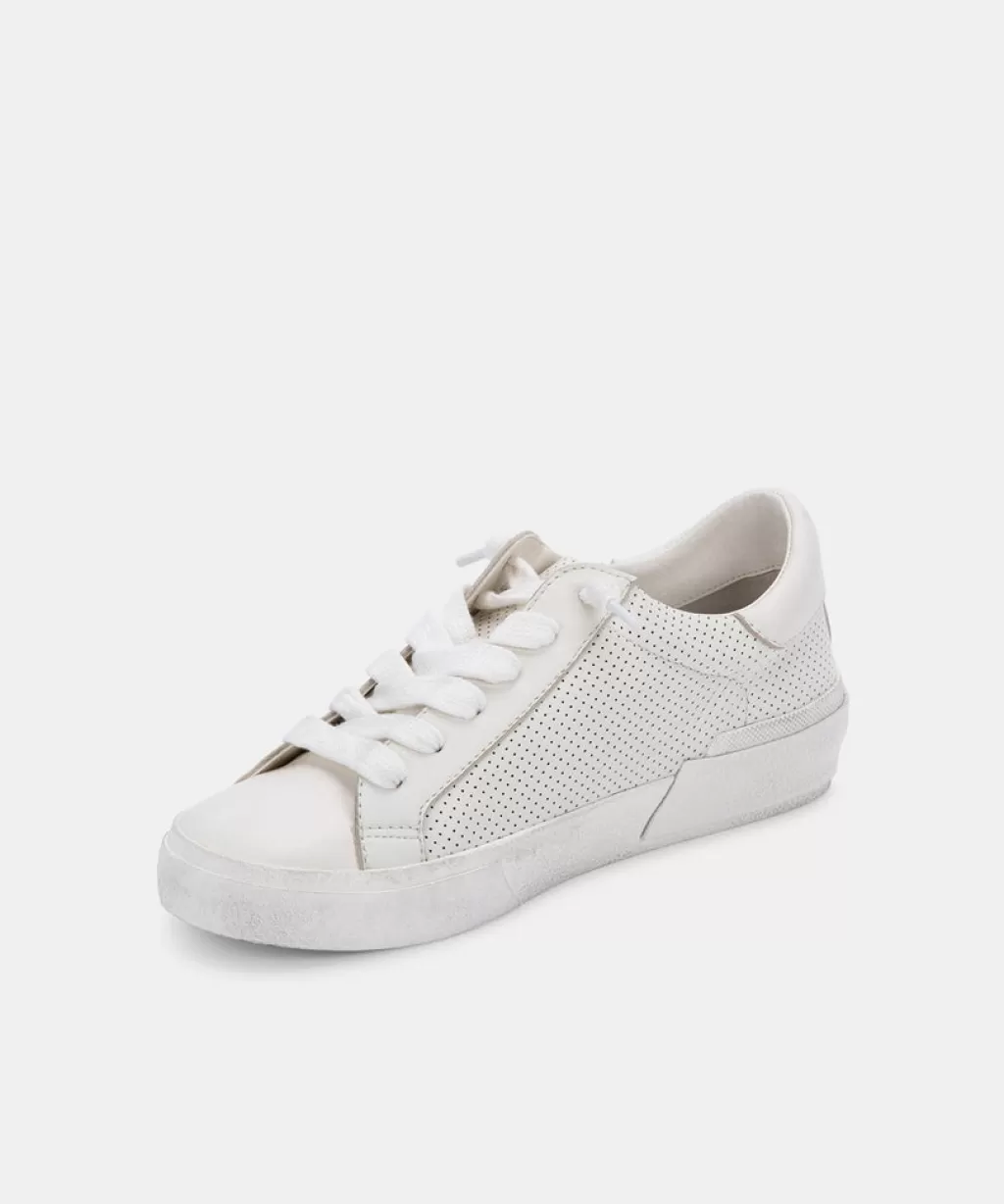 DOLCE VITA Zina Sneakers White Perforated Leather Clearance